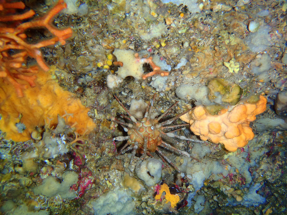- Dusky grouper or merou, anemone, common starfish, common prawn, mediterranean cardinalfish or king of the mullets, sea moss or bryozoan or sea-mat, yellow cluster anemone, noble pen shell or fan mussel