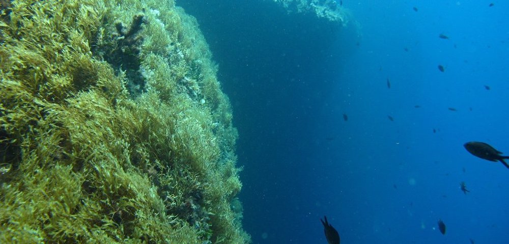 Devils Reef is located at the western end below the high cliffs of Marfa. It's an exciting dive with deep vertical drop-offs to depths up to 50 meters, sloping down to even deeper water. An old cave with stalactites is found on the southern side of the wall together with a few other caves and caverns. Caution because of the silt that gets kicked up when entering these caves. There's also a big grabbing anchor embedded in the area below the drop off.