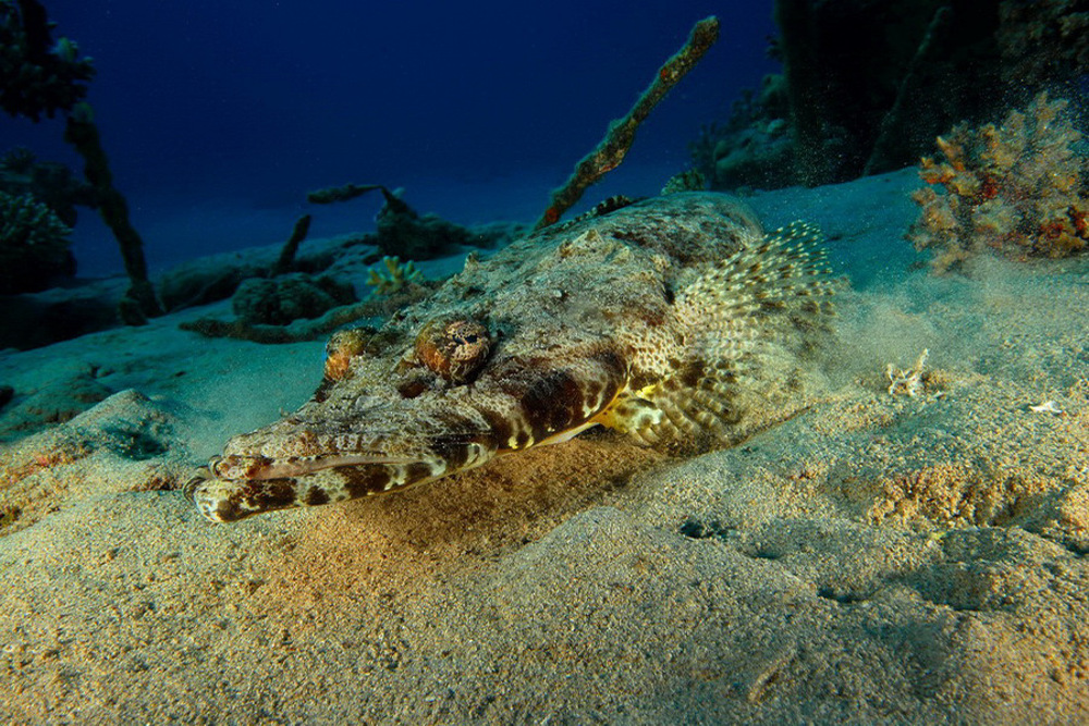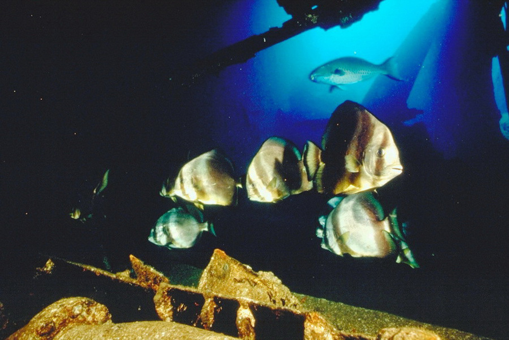 Abu Nahas is a Greek ship that sank in 1976 to a depth of 30 meters. The load, a large amount of stone tiles, made for the nickname 'Tile Wreck”. In the early morning you can see the occasional white tip reef shark. Because of the very narrow entrances and exits entering the wreck is only for experienced divers. Actual penetration is not recommended because the wreck is quite unstable!