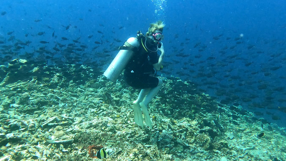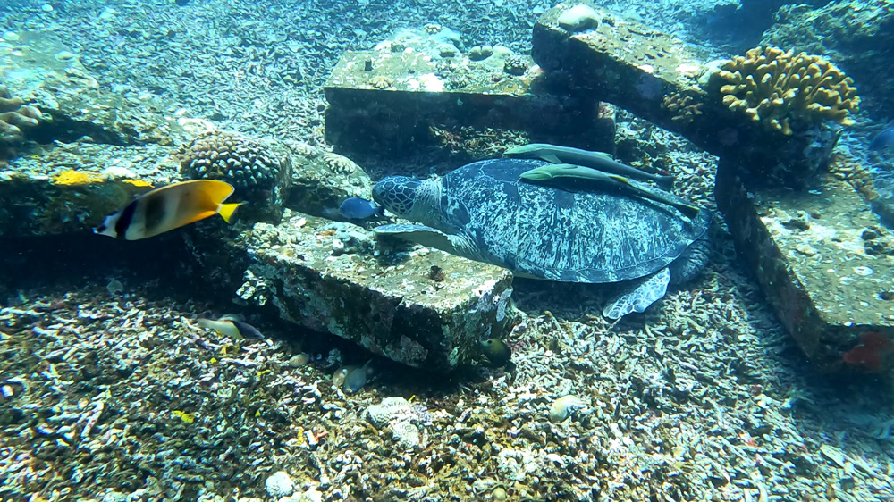 Bounty Wreck is the wreck of an old boat that used to serve as a floating pier near the Indonesian island, Gili Meno. Due to a storm in 2001, it landed on the seabed, where it became one of the first artificial reefs around Lombok. Now it's one of the most popular dive sites around the three Gili Islands, west of this island. The wreck lies on its side and is 30 meters long and 15 meters wide. The Bounty is beautifully overgrown and lies at a depth of 18 meters, with the highest point at 8 meters. Common species at Bounty Wreck are angler fish, ghost pipefish, scorpion fish and much more.