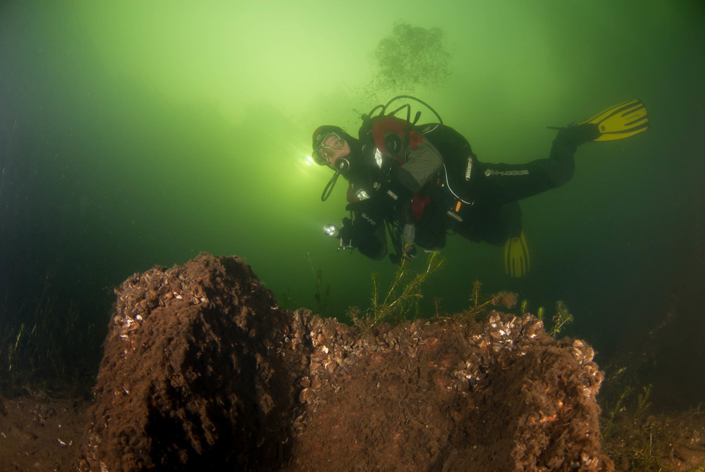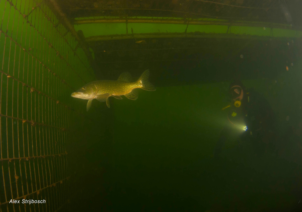 De Baars is a fish rich site with a varied underwater landscape and plenty of fish. Dive along the densely vegetated banks, clay walls, forelands, tree roots and a the tremendous amount of construction debris, including a complete church. Everything is beautifully overgrown and inhabited by fish, crabs and eels. De Baars is also known as Put van Hees, Put van Heel and Put van Casteren.