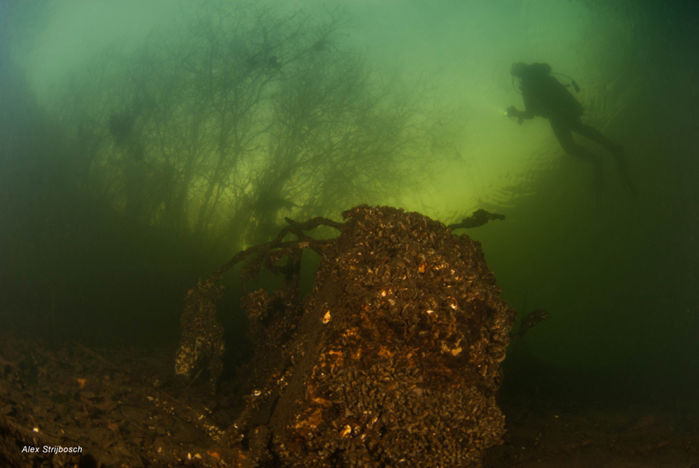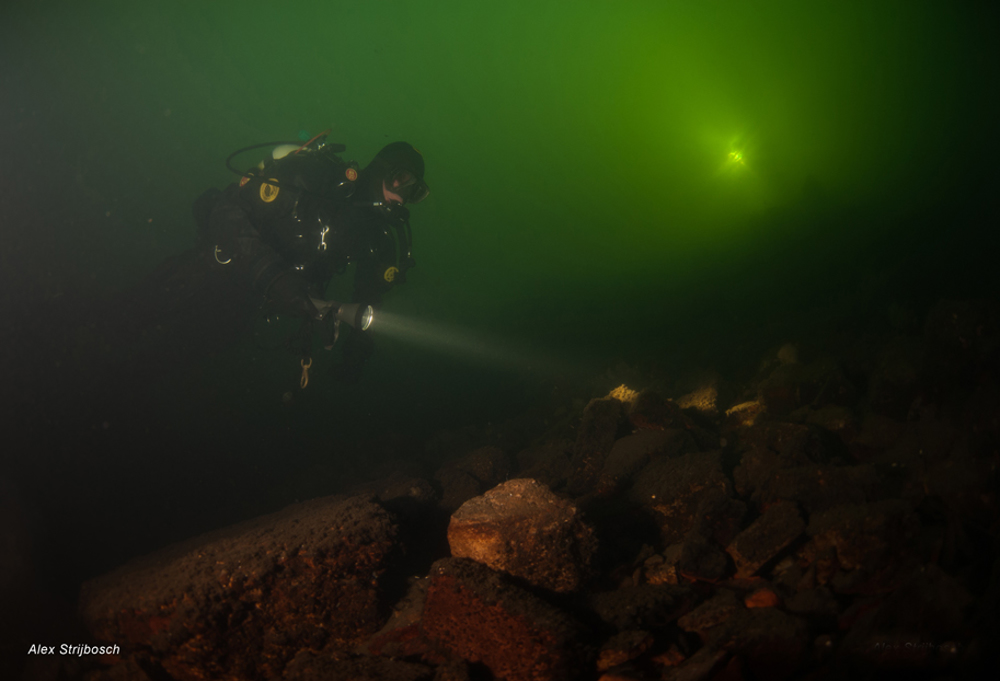 Dive site De Baars is full of debris. Beware of sharp objects between the rubble. Parking and entering the water on the south side is impossible!