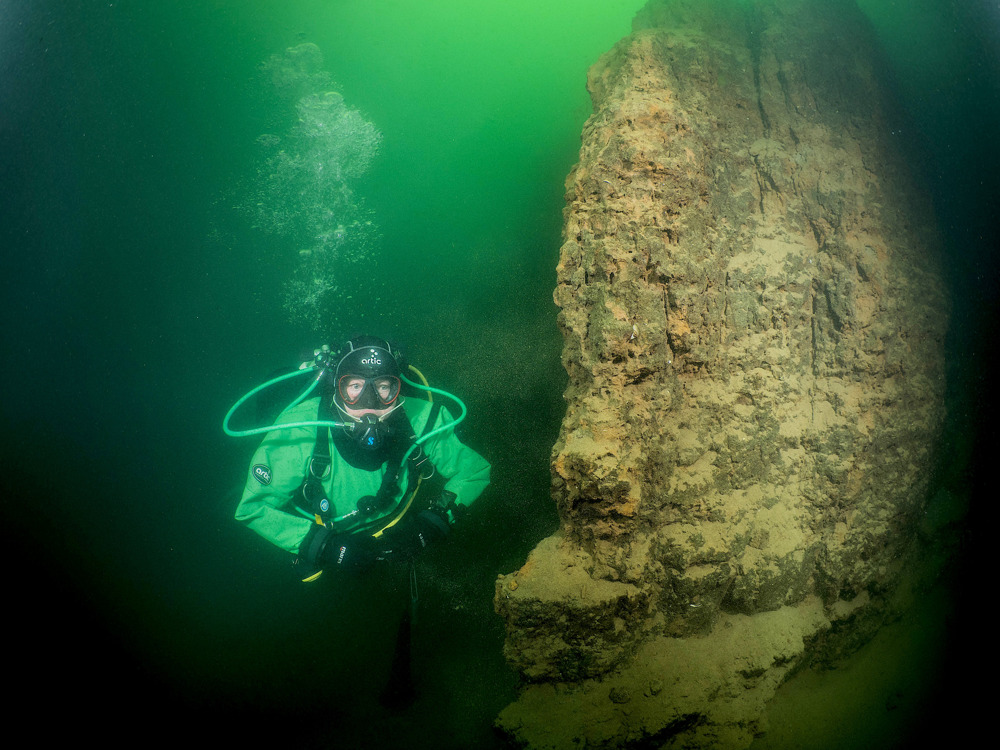 De Kuilen Mill is a fascinating dive site with varied visibility. If visibility is good you'll make one of your best dives in this region. Interesting are the historical bottom layers in the south-eastern part of the site. They are part of a fossil seabed which extends to different depths across the bottom. The layer is between 8 and 50 centimeters high and contains ancient shells and fossils of whales and sperm whales. However, caution is required. The walls are unstable and they can collapse if you dig into the bottom.