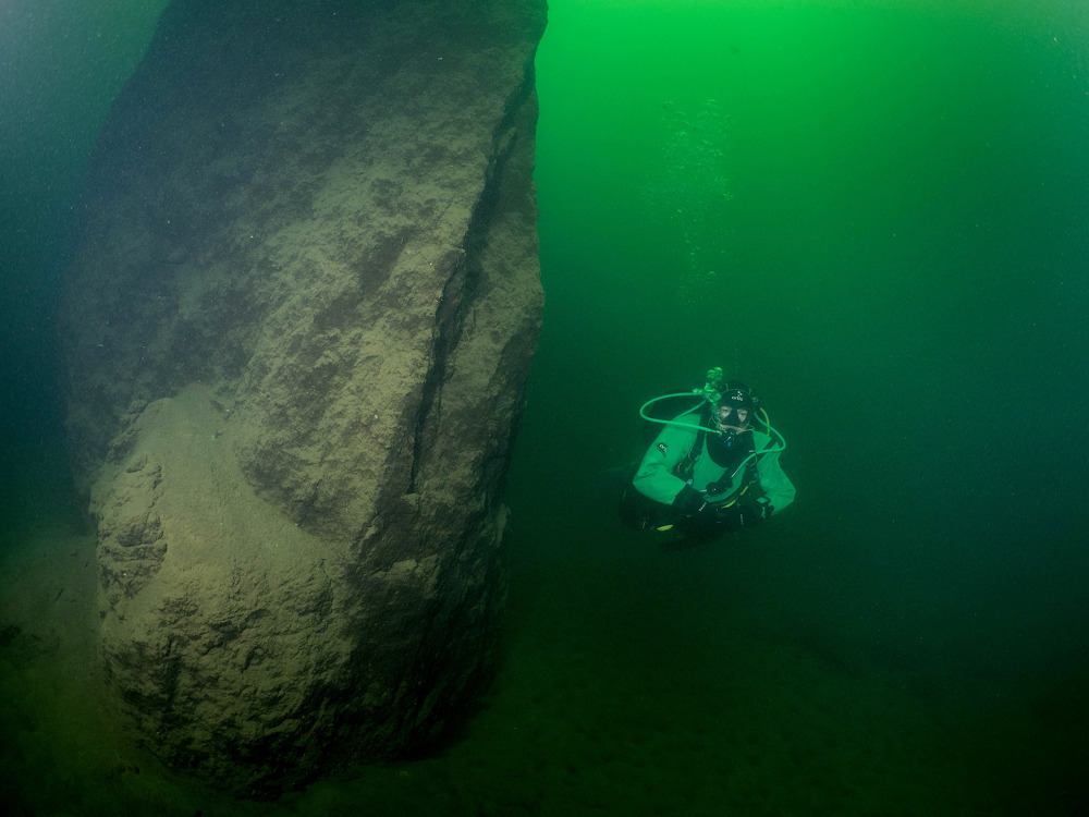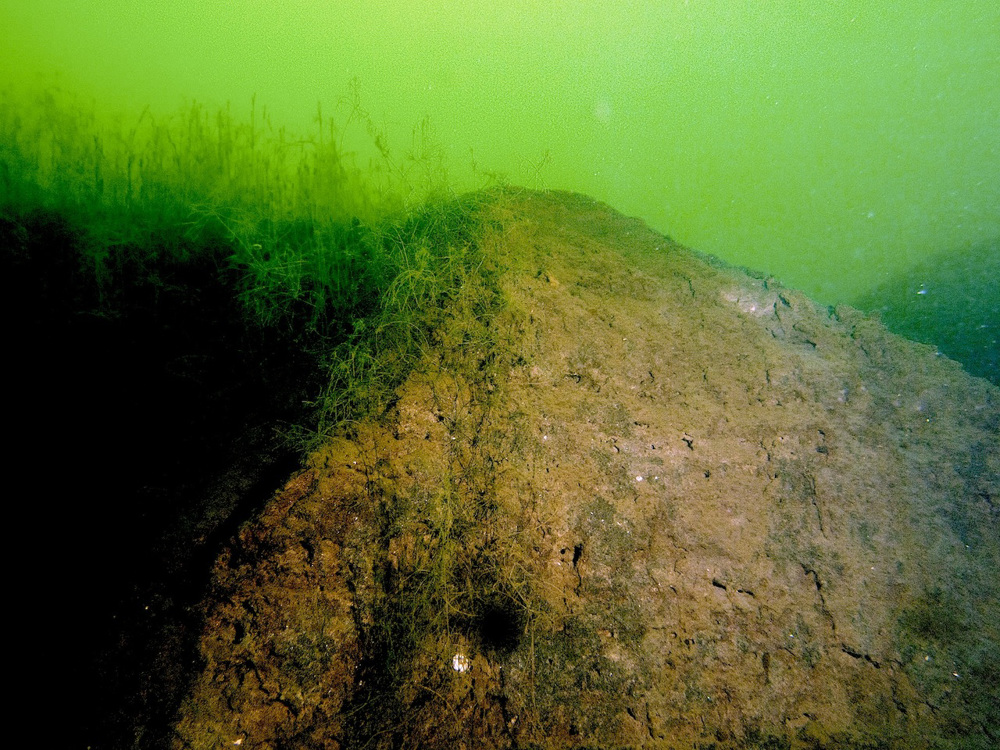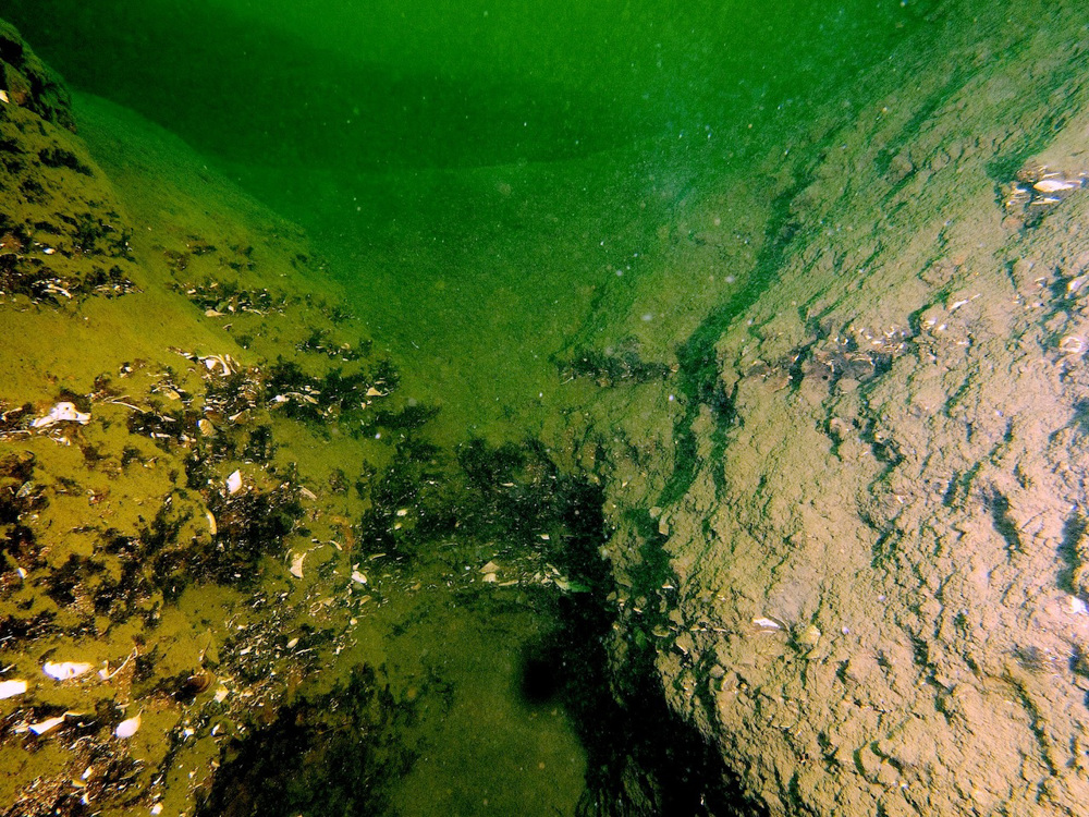 Enter De Kuilen Mill from the beach. Swim out for 50 meters and hold on to a course of 90 degrees. The plant-rich bottom will slowly change into a sediment layer, followed by an imposing area of canyons, blocks and gorges. Look for fossil remains from ancient times as you inspect the earth layers. The prehistoric layer is recognizable by the abundance of triangle mussels, small shells and tubular shapes.