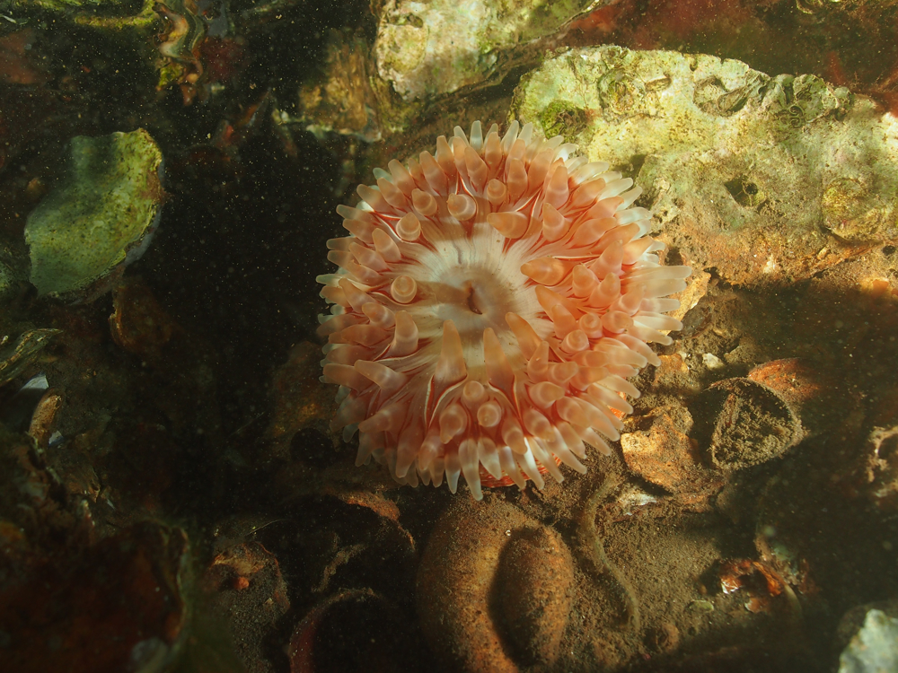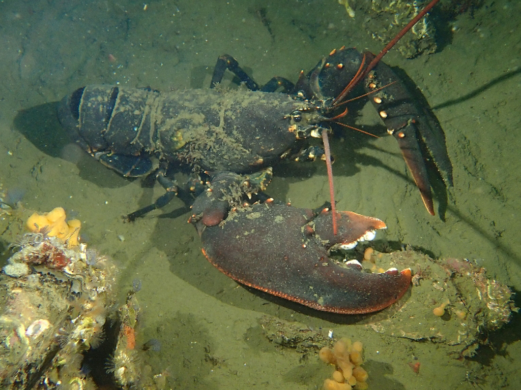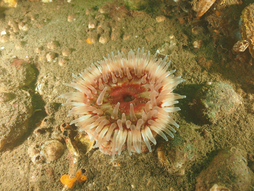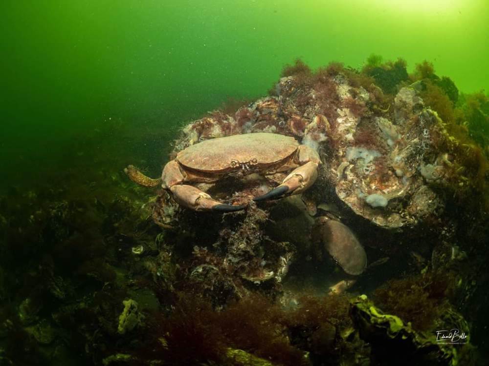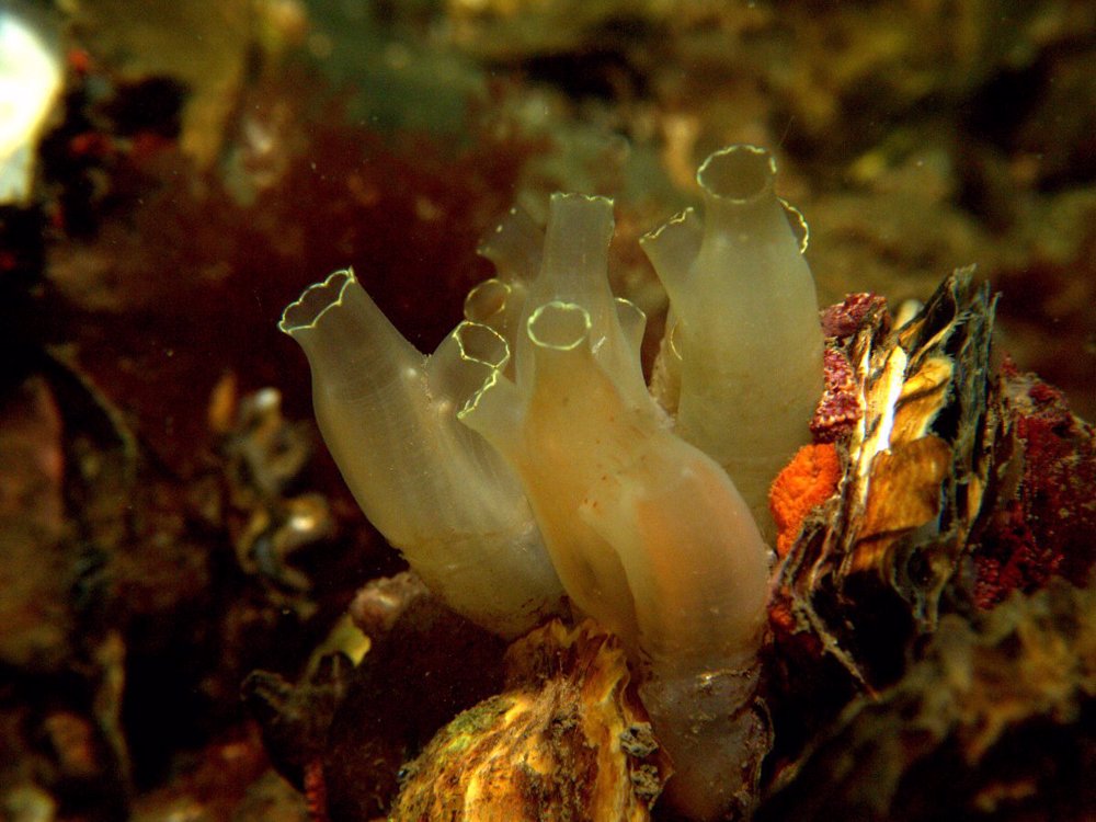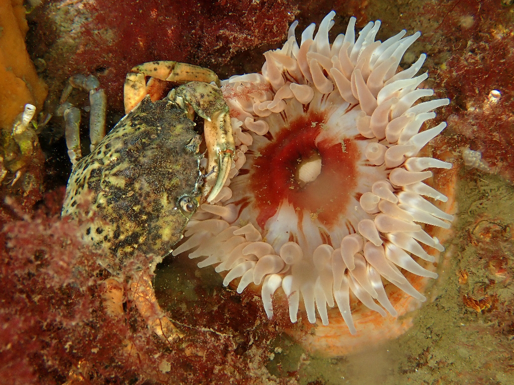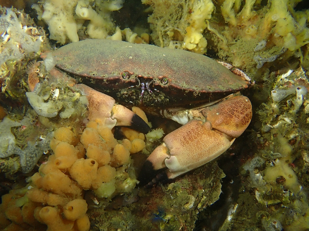 - Translucent sea squirt, velvet swimming crab, goby, colony forming sea squirt, lobster, north sea crab, beach crab, dahlia anemone, crab, pouting, eel, anemone, Goniodoris castanea (sea slug)
