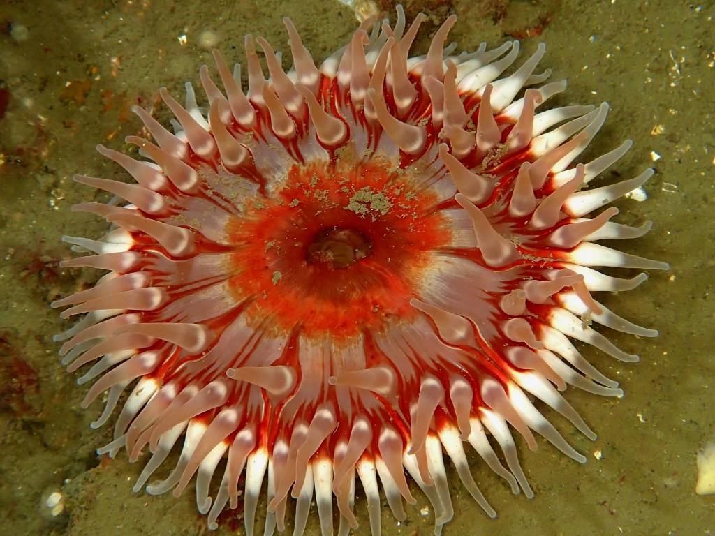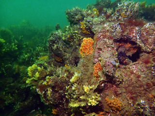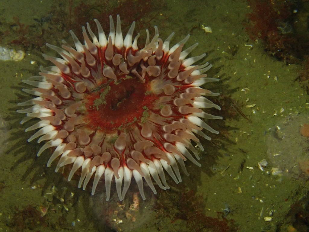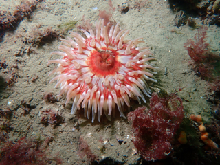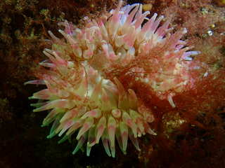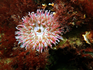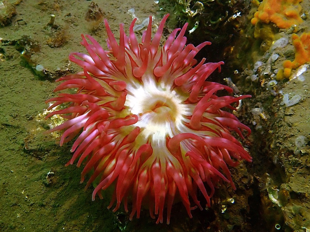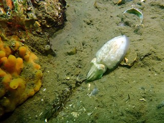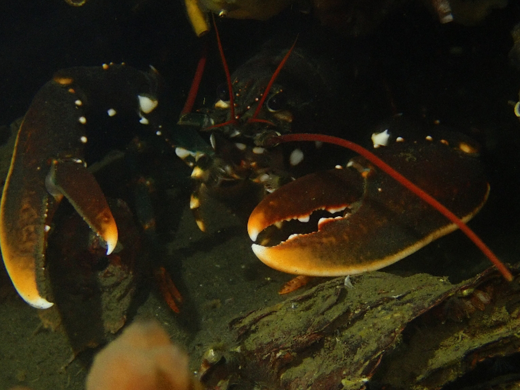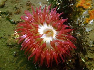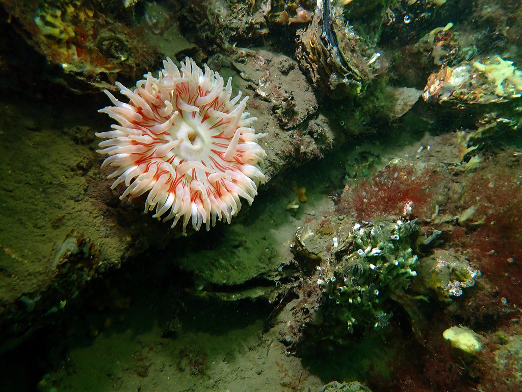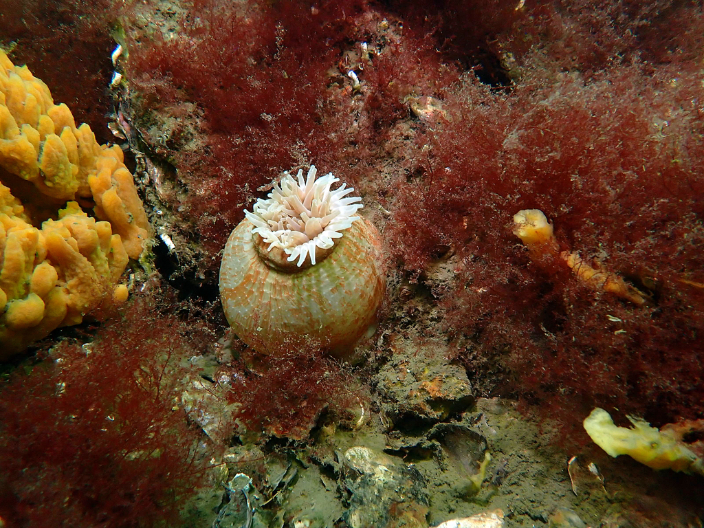- Translucent sea squirt, velvet swimming crab, goby, colony forming sea squirt, lobster, north sea crab, beach crab, dahlia anemone, crab, pouting, eel, anemone, Goniodoris castanea (sea slug)