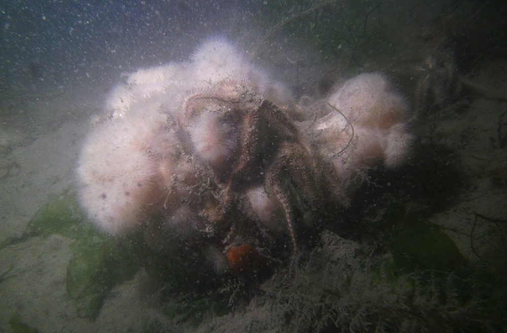 Dijkmagazijn, in Lake Oosterschelde, is an unknown dive site. What can you expect? Limited visibility and hard currents, but also an adventurous dive into an unknown world. The limited visibility is the result of a rather strong current, which also supplies fresh and nutrient-rich water. This combination results in a wide variety of life forms, including sea apples, sea anemones, starfish, butterfish, hermit crabs, swimming crabs and gobies. The bottom slopes down fairly quickly to a depth of about 35 meters and is partly covered with sea anemones.