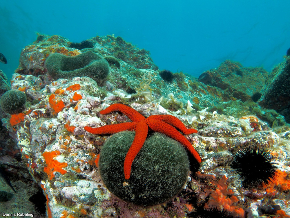 - Eagle ray, gorgonia, spiny lobster or langouste or rock lobster, nudibranch, red coral