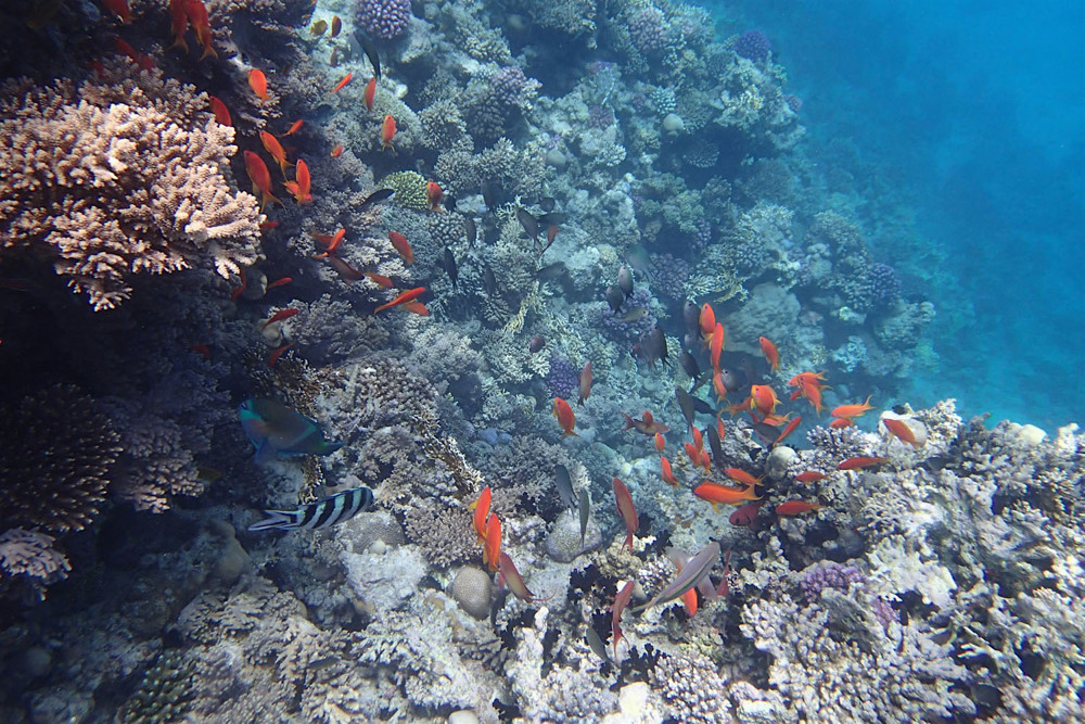 El Fanadir is a long stretch of reef north of Hurghada, with two beautiful dive sites. The beautifully colored reef wall is a paradise for divers. You'll see the most beautiful corals and an abundance of small fish species, including glass fish and cardinal bass. You might see as wel. The larger species. Close to the reef is a stretch of sand that’s about 15meters wide and a lot less interesting. El Fanadir is also suitable for night dives.