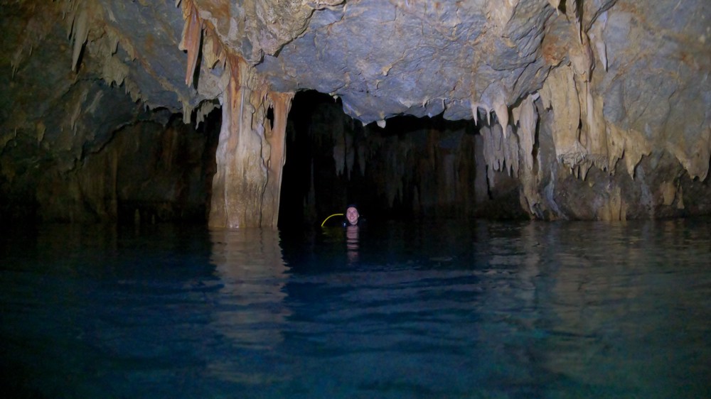 Elephant Cave can be reached by boat. The entrance is 9 meters wide and lies at a depth of 10 meters. The first room is reached through a 40-meter-long underwater corridor.