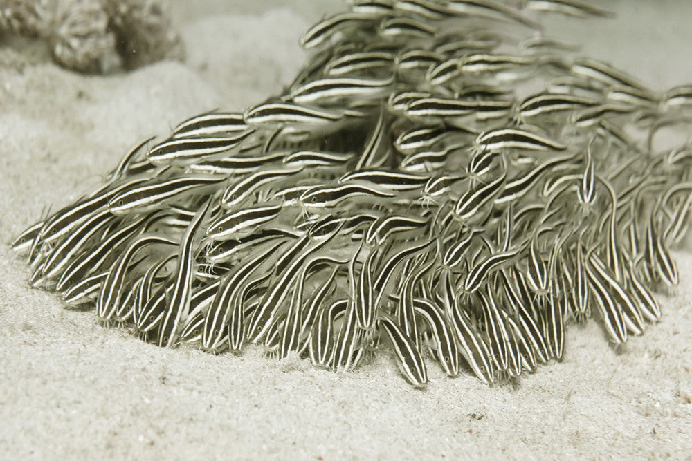 - Barracuda, shark , manta ray, spotted garden eel, ray, turtle, seahorse