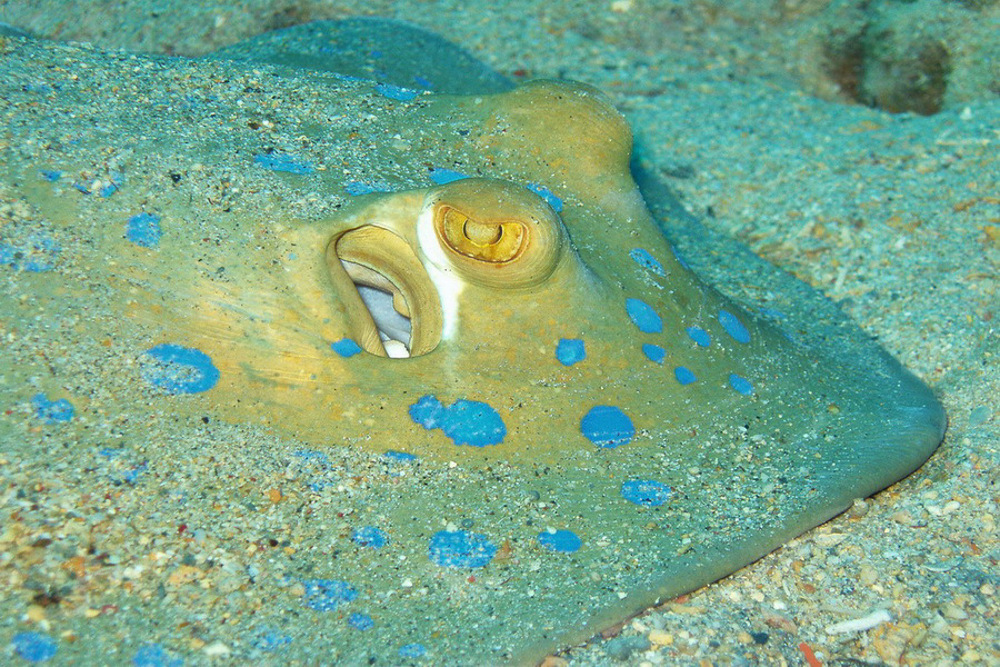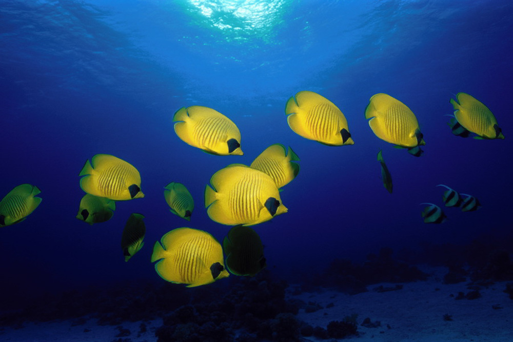 - Green moray, bannerfish, barracuda, spotted garden eel, sweetlips, shark , manta ray, turtle, bannerfish, ray