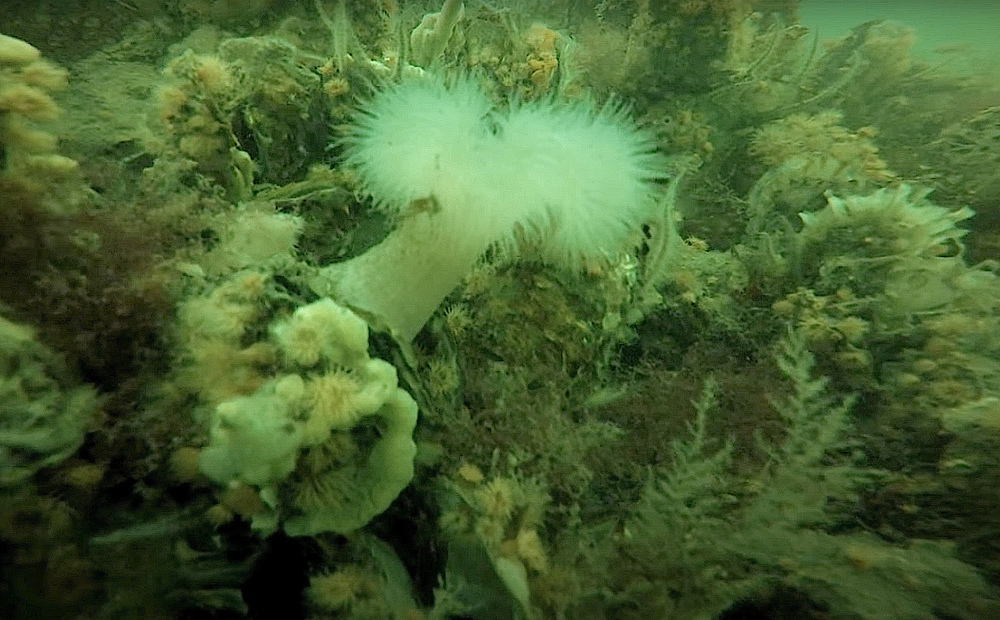 - Bath sponge, orange-striped anemone, butterfish, brittle star, flutefish, velvet swimming crab, pouting, hydroyd (polyp), thicklip grey mullet, ray, oyster, sea bass, catfish, lumpfish, bull-head or shorthorn sculpin