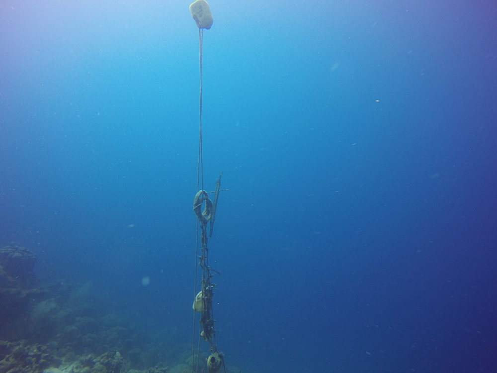 The best way to enter the water at Hole in the Wall is from the jetty but take care, the water is shallow. Swim out for 100 meters with the jetty straight in front of you to avoid high waves. Descend where you can see some light spots between the rocks and the coral. Now dive in the direction of your choice. Pay attention at the landmark (see photo) to leave the water at the right spot. Turn around after 30 minutes or exit at Mangel Halto, when diving from the beach.
