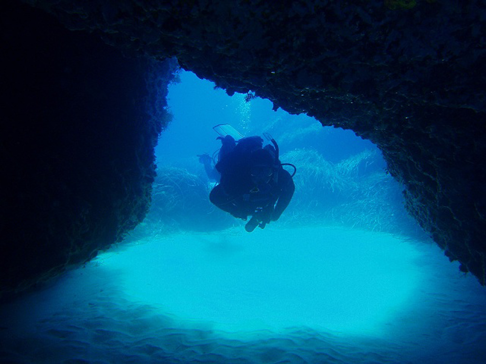 Hondoq Reef is an easy and shallow small reef which houses lots of marine life in its cracks and crevasses but also in the surrounding white sand. There are a few swimthroughs and underwater arches and a pipe which transports water from Gozo to Comino. The pipe is covered in algae, coral and has attracted quite a few species of fish. Currents, surge and access methods have made it a perfect dive site for starting divers. The bottom is a mixture of posedonia grass and sandy patches. It provides excellent photographic scenery due to its bright white sands and light filtering through the arches.