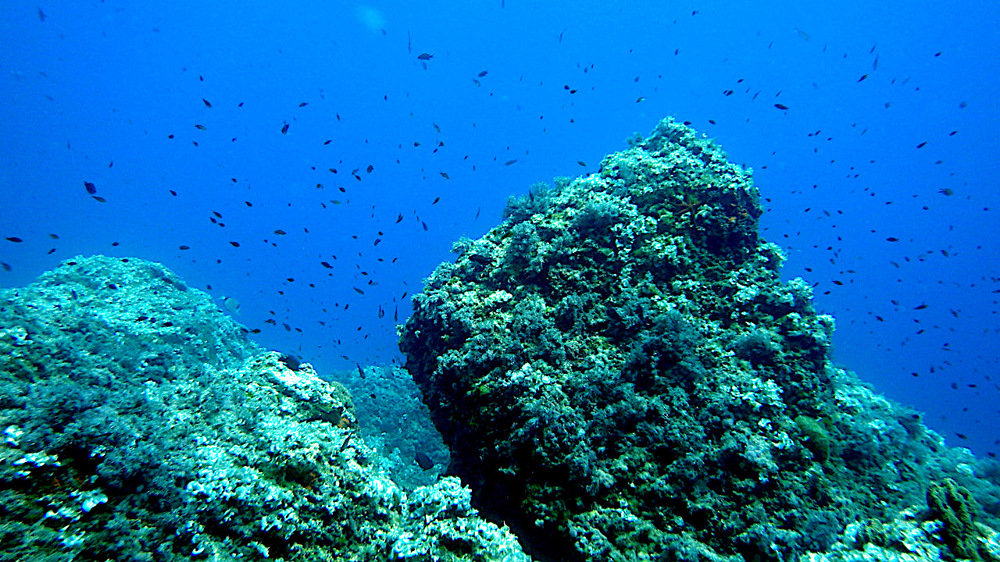 Isla Eulalia reef is a dive site on the island of Santa Eulalia off the coast of Ibiza. It's an interesting dive site with a large reef full of platforms, craters and crevices. The cliffs are densely covered with polyps and corals so there is enough food for marine life. Crabs, octopuses, barracudas and large schools of fish inhabit this area.