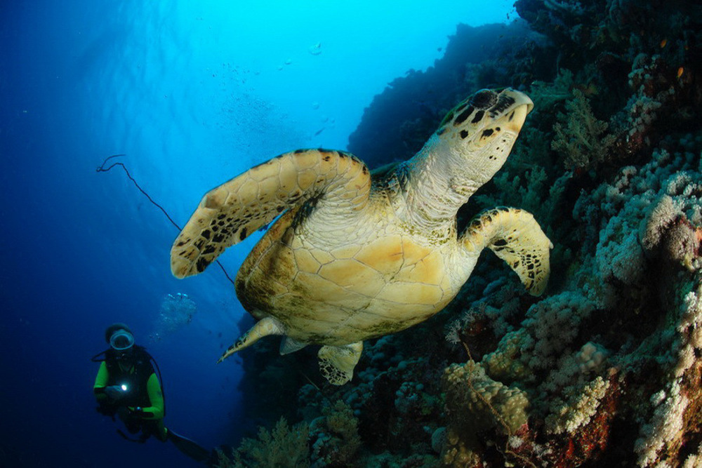 - Moray, napoleonfish or humphead wrasse, ray, turtle, whitetip reef shark