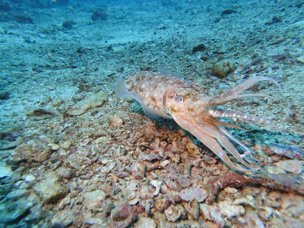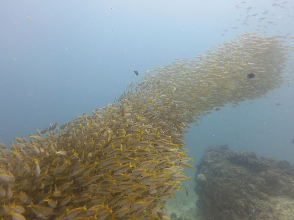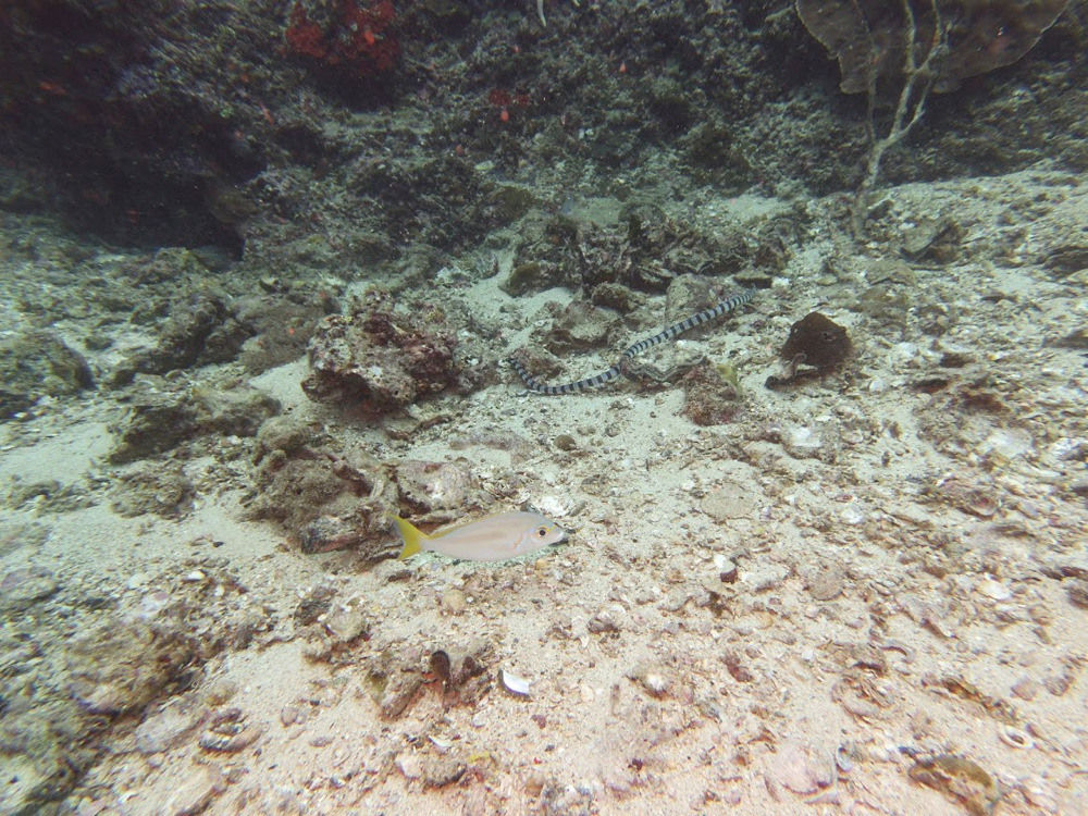 Ko Bida Nok is a beautiful dive site on the Phi Phi Islands. The bay is demarcated with small yellow buoys and up to 6 to 12 meters deep. Black tip reef sharks swim around this area. If you stay still around 3 meters you have a good chance of seeing them. Ko Bida Nok is also home to yellow snappers, rays, turtles, cuttlefish, sea snakes and much more. Still, the big attraction of Ko Bida Nok remains the blacktip reef shark.