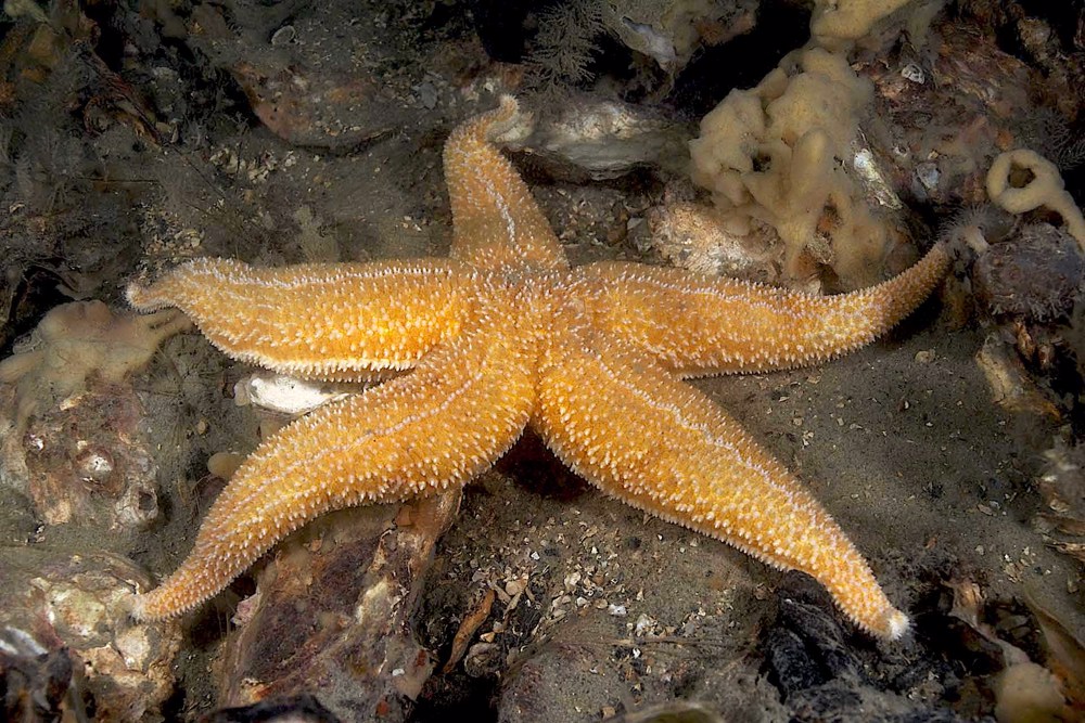 - Butterfish, common starfish, crab, goby, lobster, Goniodoris castanea (sea slug), north sea crab, sepiola, snailfish, blenny, bull-head or shorthorn sculpin