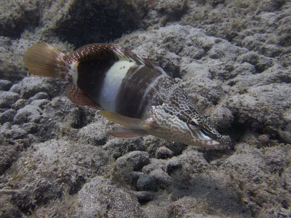 La Lajita in Fuerteventura, Spain, is a dive site with two completely different underwater worlds. The westside consists of a fairly flat sandy bottom where sometimes large stingrays can be seen. The east side is a more rocky area full of cliffs, boulders and a few caves you can dive through. Common species in La Lajita are groupers, parrotfish, barracuda and octopus.