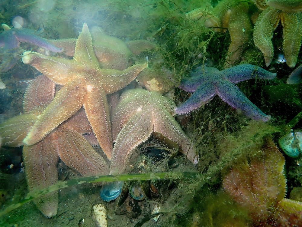 Lyngsbo Beach is a beautiful dive site with rocks, kelp, exciting slopes, areas of sea grass and lots of marine life. Dive over the varied bottom of sand and pebbles where life has ample opportunity to develop. Hermit crabs and beach crabs crawl among the sponges, weeds and stones and flatfish hide in the sand. The areas with kelp form a completely different habitat where you will encounter other species. Take a diving lamp with you to observe all the beautiful colors. Especially the fields of red seaweed are beautiful to see. Diving is possible at high and low tide.