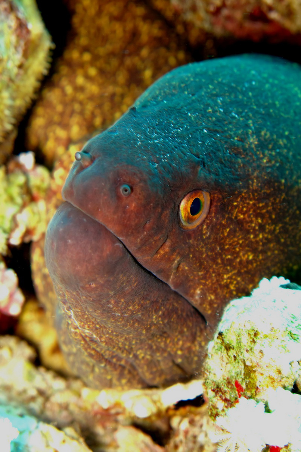 - Clownfish, perch, sweetlips, mediterranean moray or roman eel, ray, turtle, sweetlip