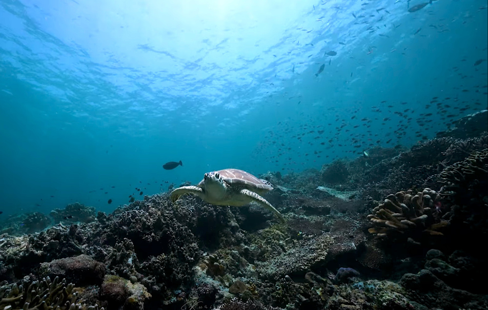 Merangis reef is a relatively shallow dive site with relatively limited visibility.