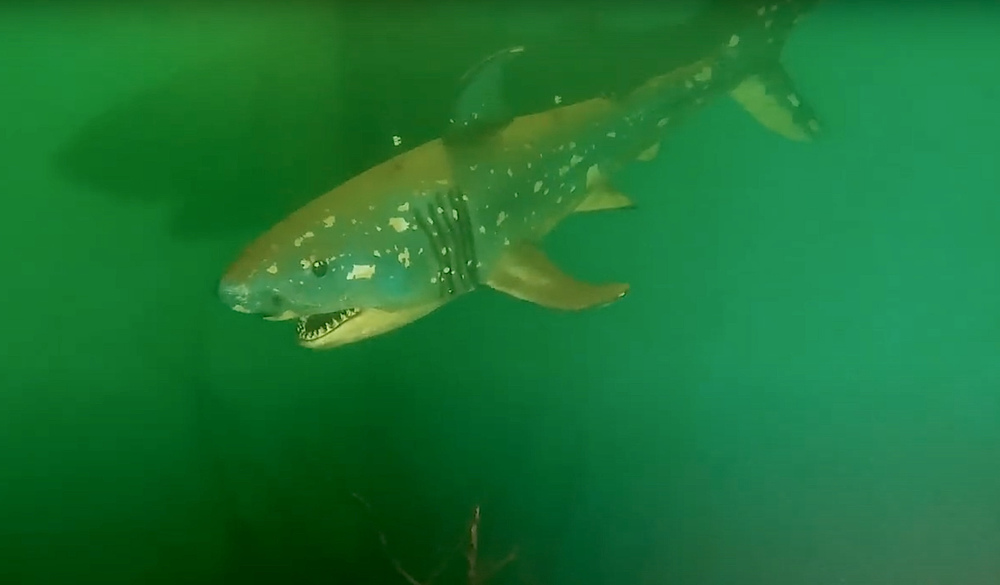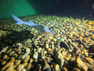 You can see sturgeons in the first 4 rooms and in the last one. In addition to the sturgeons you get the occasional school of goldfish.