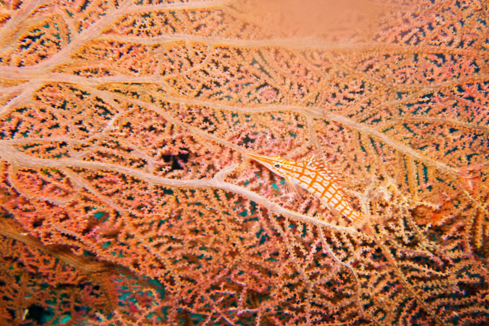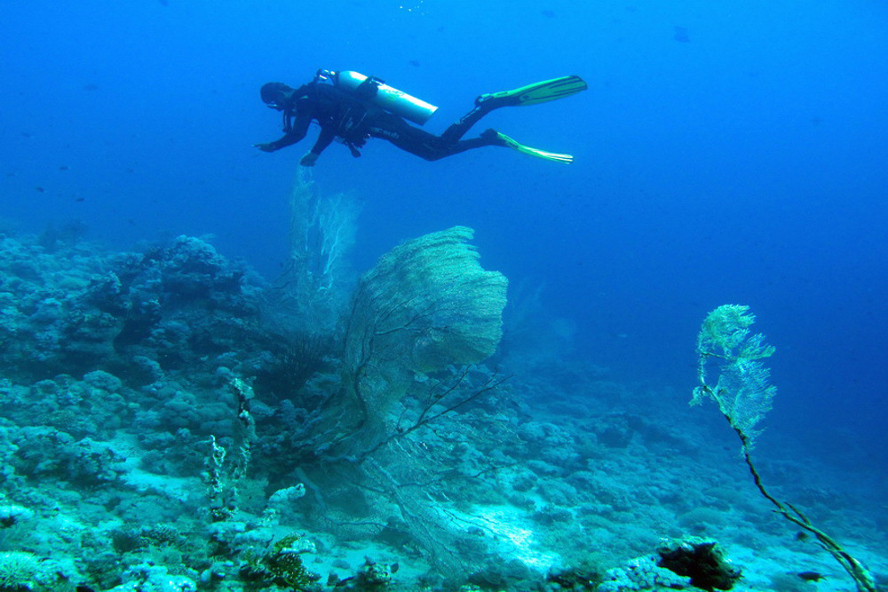 Ras Ghamila means Delicious Cape. It is an ideal dive site for a drift dive. You start your dive from the jetty in front of the Conrad Hotel and let yourself drift eastward to the green beacon at the western end of the Strait of Tiran. In the shallow end is a sandy plateau with some pillars and small table corals. Deeper, between 20 and 25meters you can see giant gorgonians. A fairly easy dive for all levels.
