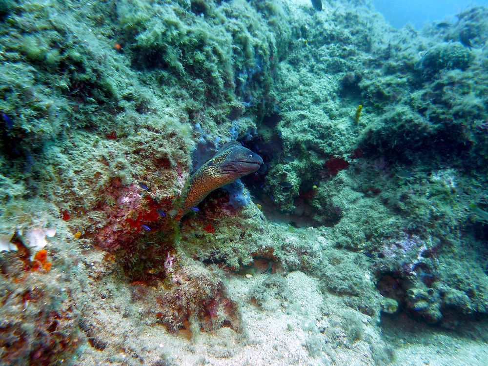 Samos Limnionas Underwater Tunnel is a beautiful dive site with large rock formations, lots of marine life and a short underwater tunnel. It's a dive site for both experienced and inexperienced divers. The site is also used as a training site and freedivers and snorkelers enjoy coming here as well. Between the rocks you'll find numerous species including octopuses and moray eels. More experienced divers descend along the wall to a depth of 40 meters.
