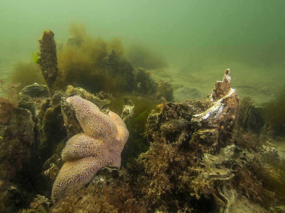 - Anemone, butterfish, shrimp, breakwater anemone, goby, lobster, north sea crab, eel, flatfish, lumpfish, small snakelocks anemone, sea squirt, plumose anemone, bull-head or shorthorn sculpin, common starfish, sepiola