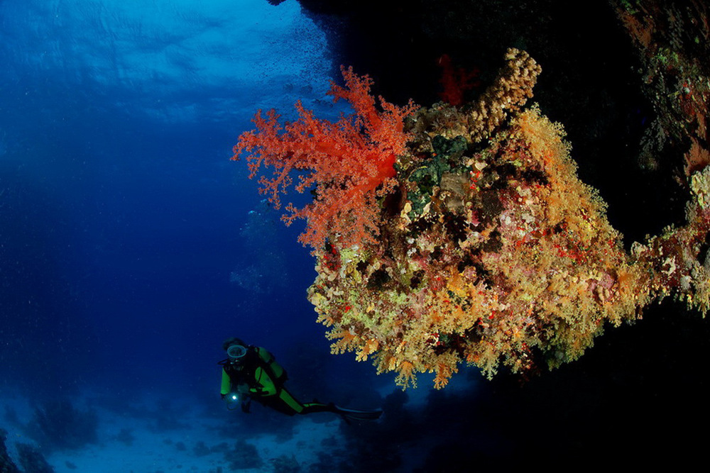The mystical island Zabargad, also known as St. Johns Island, has much to offer. The reefs here are spectacular. They are covered with coral gardens and terraces running down, with beautiful views. A true paradise for underwater photographers. Almost everything you see is worth a picture, certainly the wreck. It is an old freighter. Pretty overgrown and surrounded by colorful fish and pristine reefs.