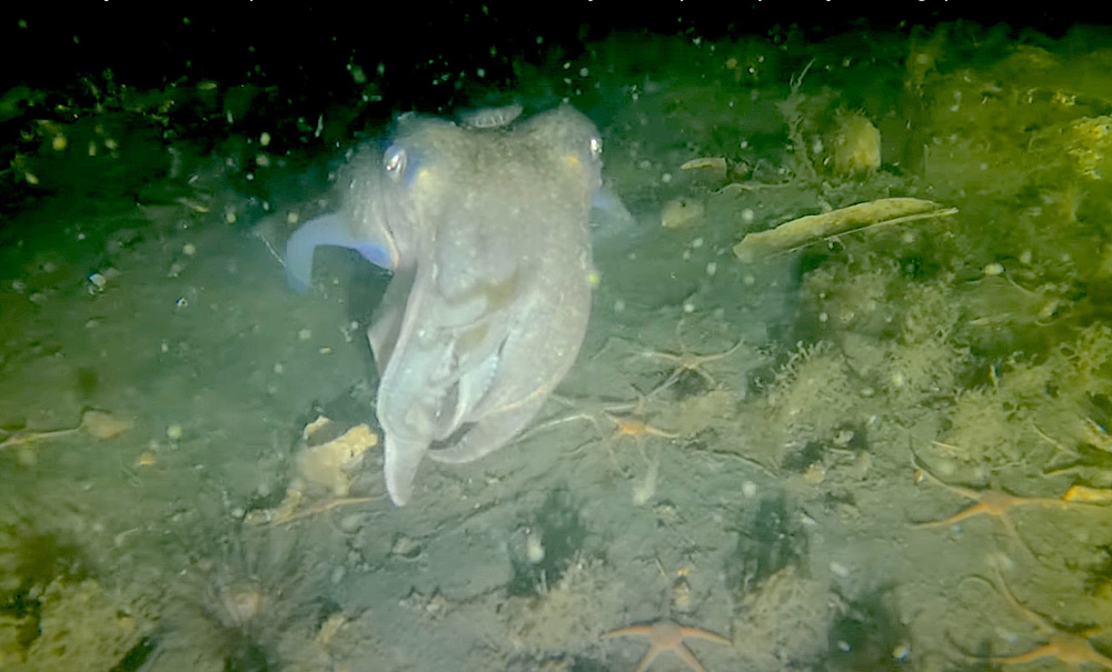 - Orange-striped anemone, sea squirt, Cuthona gymnota (seasnail), japanese sargassum, cod, lobster, north sea crab, squid, porcelain crab, catfish, sponge, pouting, seahorse , flatworm, sculpin