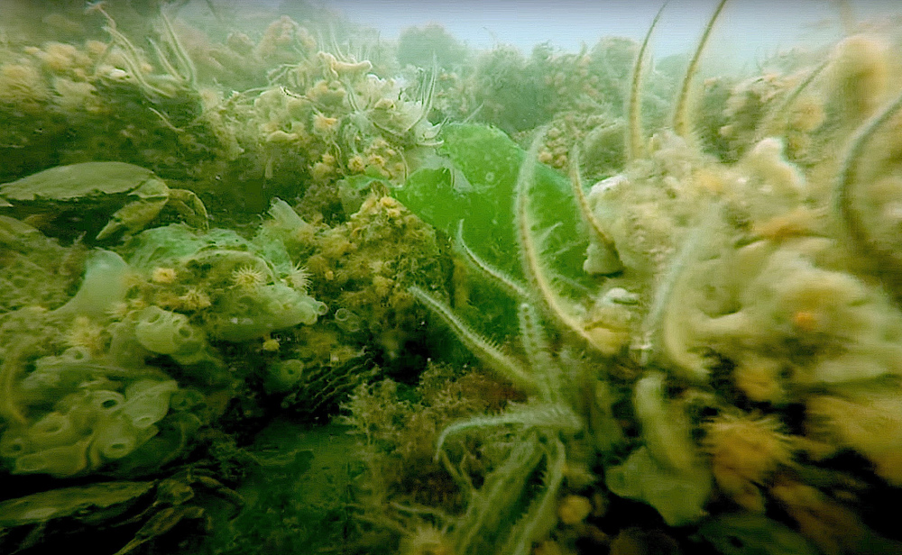 - Bath sponge, orange-striped anemone, butterfish, brittle star, flutefish, velvet swimming crab, pouting, hydroyd (polyp), thicklip grey mullet, ray, oyster, sea bass, catfish, lumpfish, bull-head or shorthorn sculpin