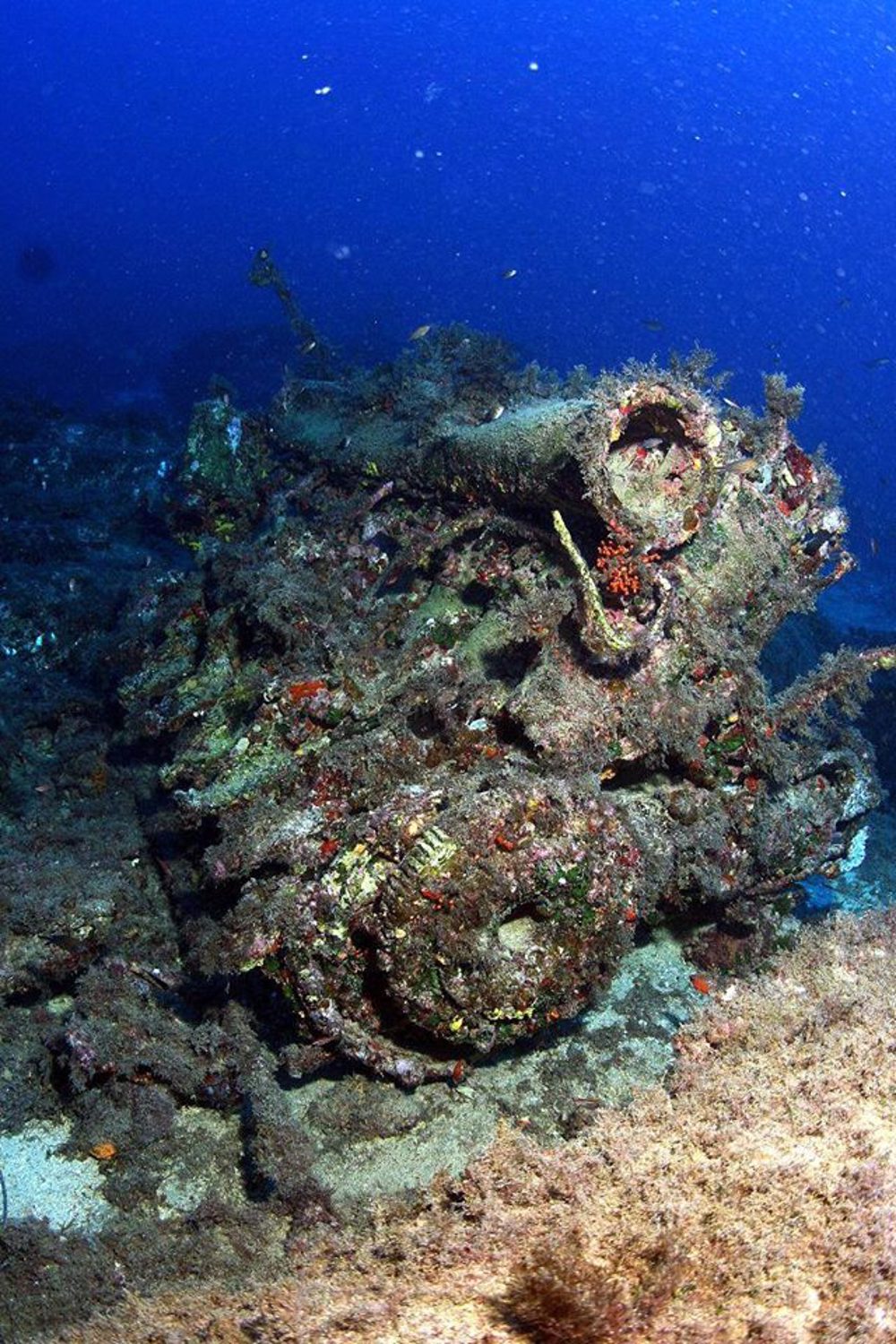 The wreck is surrounded by lots of other wreckage and debris from the war years.