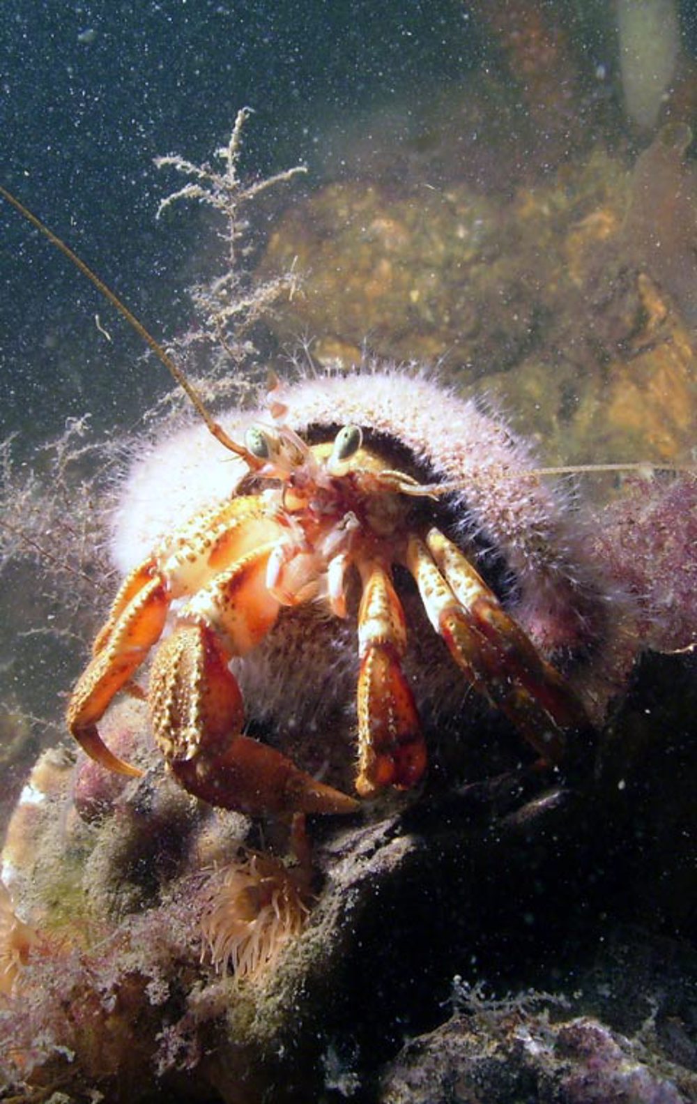 - Anemone, shrimp, flathead grey mullet or striped mullet, common hermit crab, lobster, wrasse, nudibranch, oyster, eel, lumpfish, skeleton shrimp, pouting, beach crab, weed, flutefish