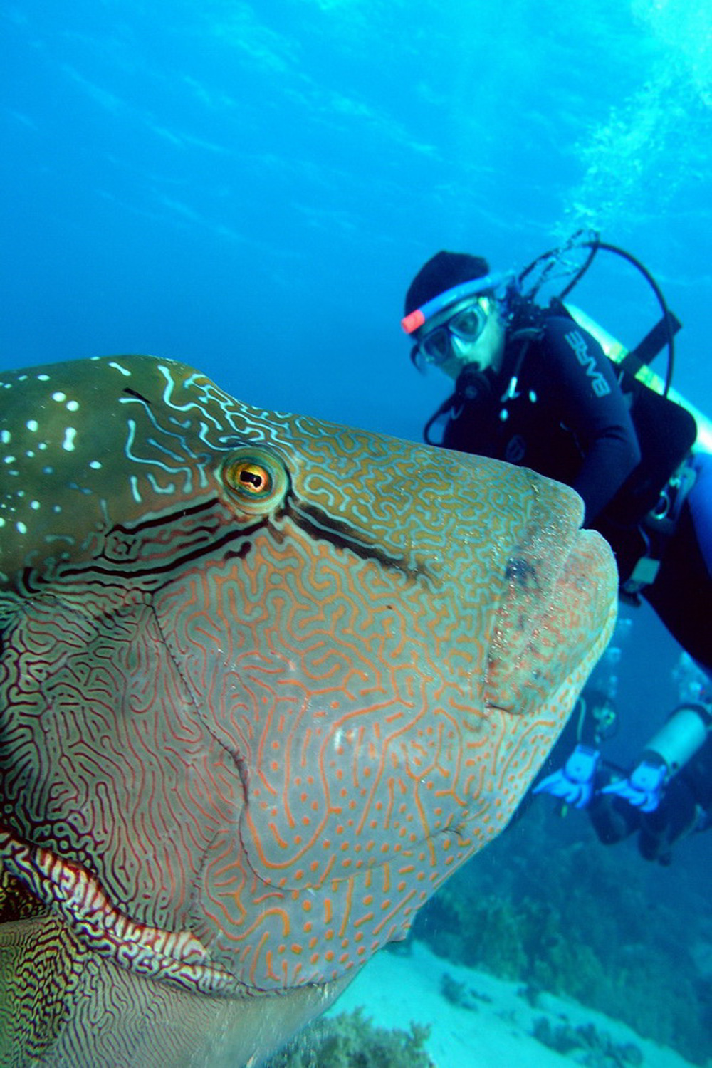- Green moray, eel, clownfish, bannerfish, hammerhead shark, amberjack, lionfish, manta ray, turtle, napoleonfish or humphead wrasse, lionfish, sweetlip, tuna, bannerfish, whitetip reef shark