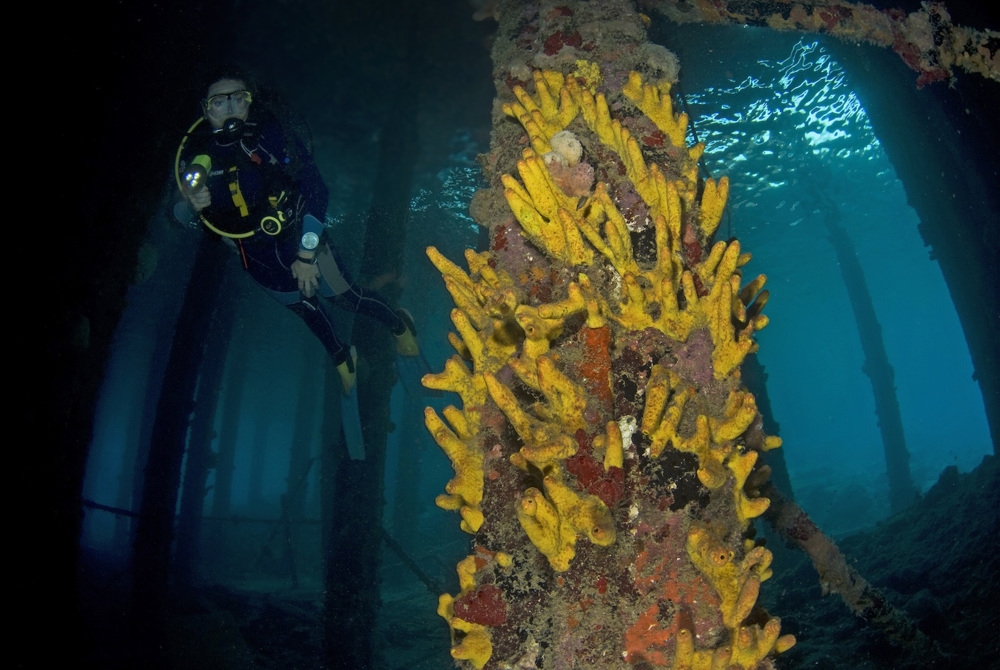 Be aware! Diving is only allowed if there is no boat at the pier. Ask for permission at the guard house (yellow shack) under the pier, just to be sure.