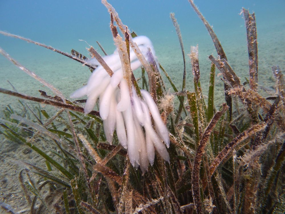 Dive site Zeyko near Karavas on the island of Cyprus has a finger-like reef system. Between the long 'fingers' of the reef are areas of sand and neptune grass. The bottom of Zeyko is rocky and the site is home to species such as octopus and groupers. The top of the reef starts at 12 meters and the reef wall extends to 40 meters.